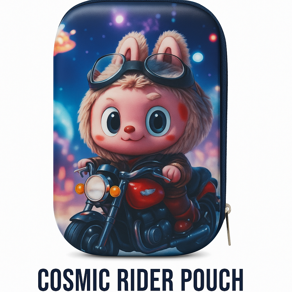 Inkspot® Cosmic Rider Pencil Pouch | Stylish Cartoon Labubu Motorcycle Design for Kids & Students